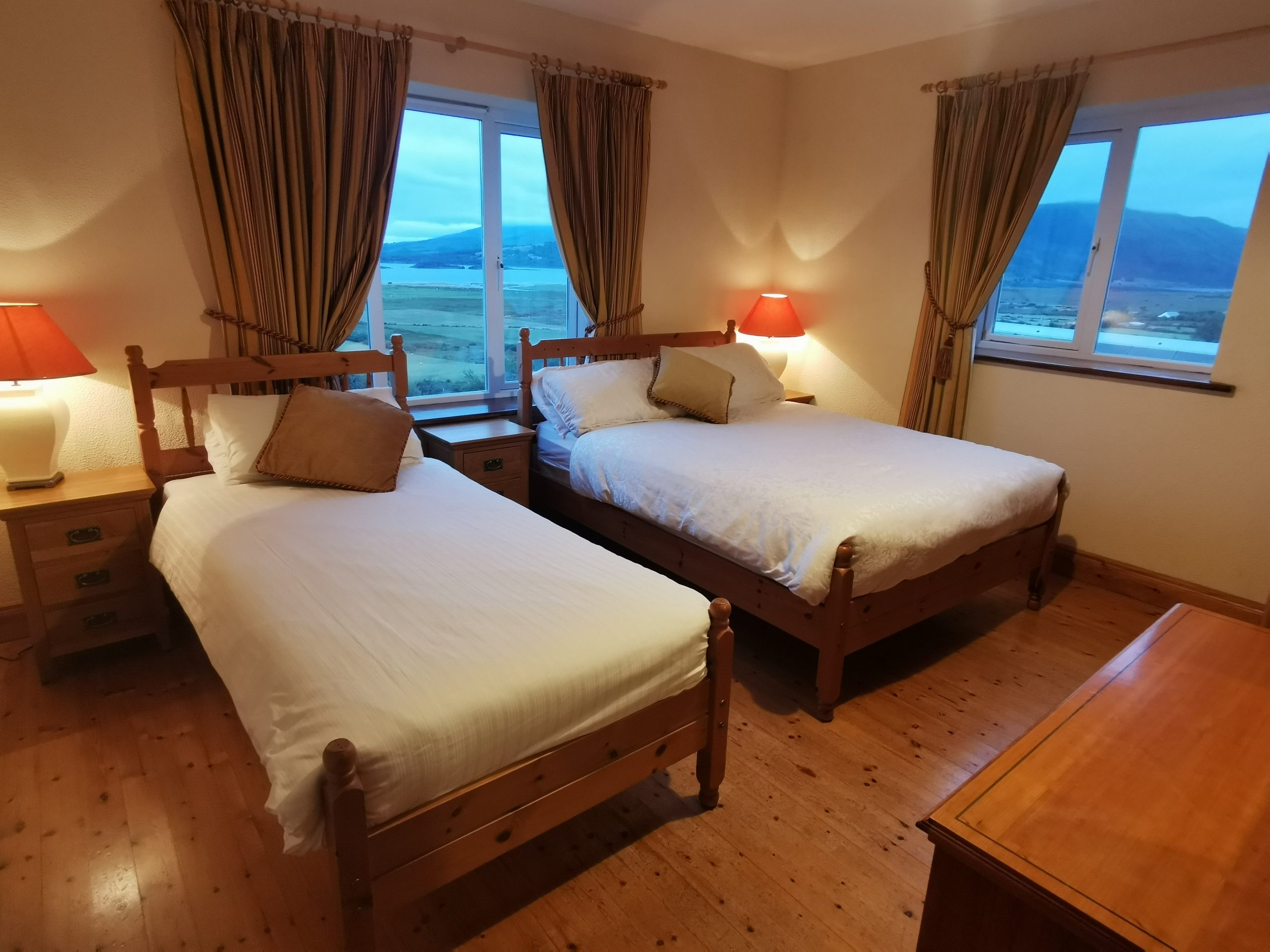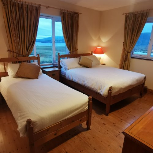 A warm and cosy family room suitable for up to three individuals. This room is complete with an  en-suite, WIFI,  television and access to tea and coffee making facilities. This room is uniquely fitted with two windows one facing right over Lough Mask and will leave you in awe with its beauty. The second window is looking back into the valley and onto the Maamtrasna mountains. The scenery from this room is second to none and gets the best of both worlds. For further queries please feel free to contact us by email (mairelukes83@gmail.com) or by phone (0949544080/0879403430)