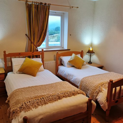 A cosy snug room fitted with two single beds ideal for friends or family. This room has everything you will need during your stay with us. Complete with an en-suite, WIFI, television and access to tea and coffee making facilities. This room has a window looking back into the valley and into the Maamtrasna mountains providing you with beautiful scenic views while you stay with us. For further queries please feel free to contact us by email (mairelukes83@gmail.com) or by phone (0949544080/0879403430)